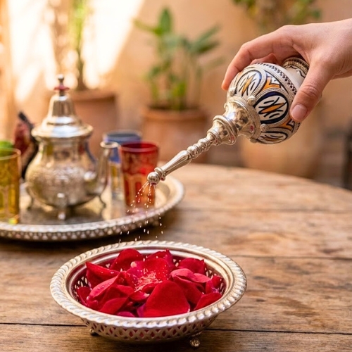 Plus qu’un simple objet de décoration, ce Mrach (aspersoir traditionnel) est un héritage culturel. Il incarne la générosité et le raffinement des cérémonies du Maghreb.